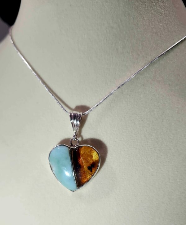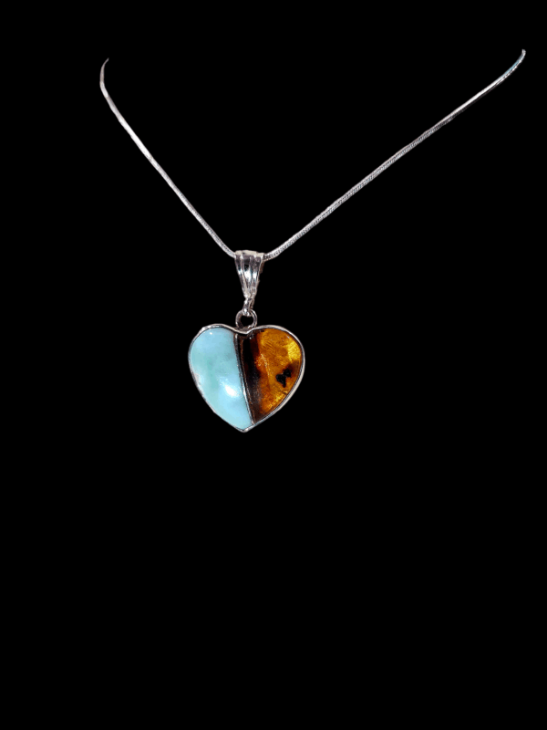 Cadena con dije en forma de corazón con Larimar y Ámbar