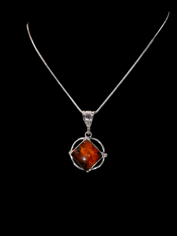 Cadena en plata 925, 4.72 pulgada de largo, dije en forma exagonal .39 pulgada con piedra de ambar montado en plata de alta calidad.