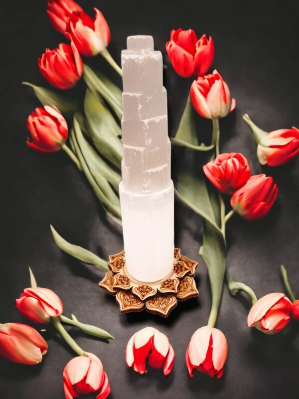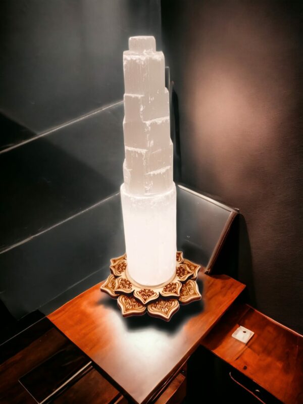 La palabra Selenita viene del término reflexión, este cuarzo es utlizado para atraer paz, serenidad, meditación y relfexión. Esta lámpara es ideal para atraer calma en el lugar donde sea colocada, combinada con las ténues luces de led atrae relajación y paz a su entorno.