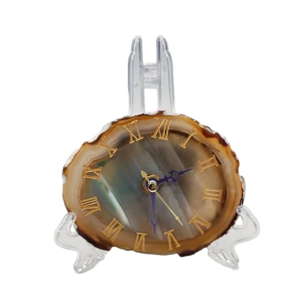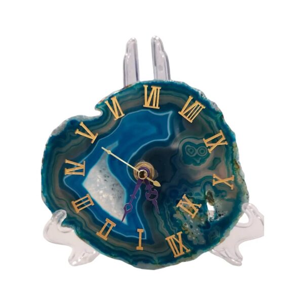 Estos relojes están hechos a mano con cristales de Ágata Botswana, conocidos por sus patrones únicos y suaves tonalidades. Además de ser piezas decorativas impresionantes, este tipo de cuarzo es valorado por sus propiedades espirituales, promoviendo equilibrio emocional y energía positiva en cualquier ambiente. Cada reloj es una pieza única que combina belleza natural y bienestar energético.